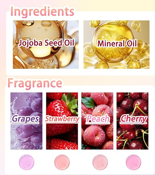 ·Lip Oil Set: Lip glow oil set has 4 delightful fruit flavors with a refreshing, non-sticky touch for long-lasting wear, which when applied to the lips quickly reveal glamorous, hydrated lips for an unforgettable and fun lip makeup experience.