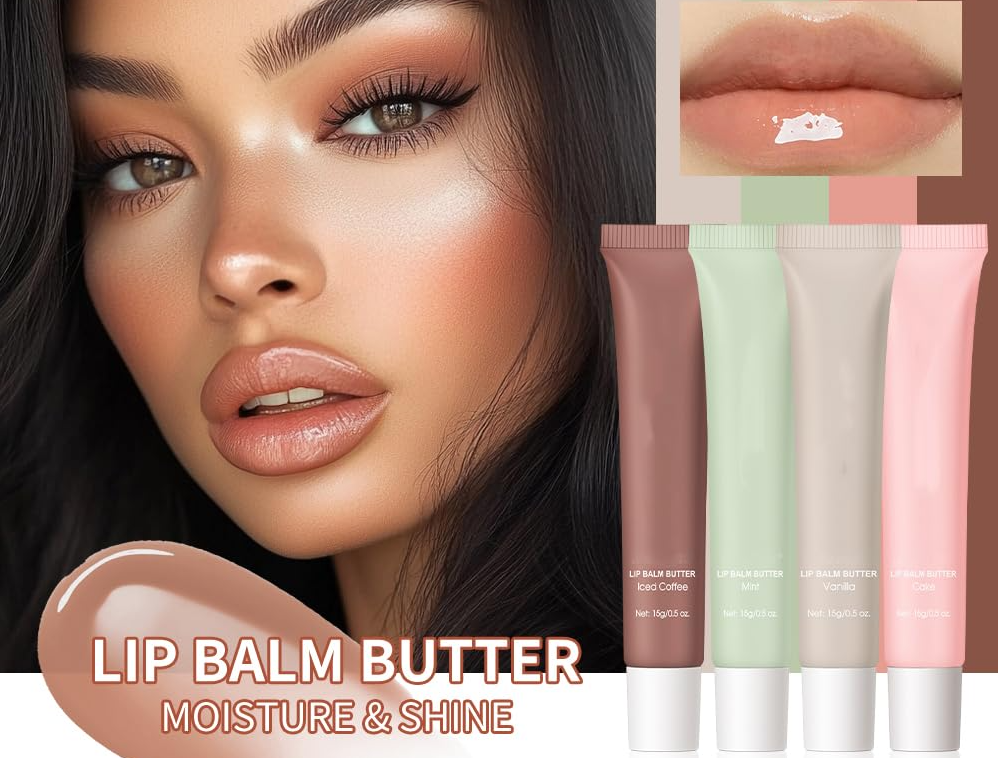 ·✅【Shiny Glossy And Glow Finish Lip Butter Balm】Plumping lip butter balm adds lasting, shiny, and lacquer-like luster to bright and moist lips. with four delicious scent options: #1 Vanilla, #2 Mint, #3 Ices Coffee and #4 Cake. Each smell is wonderfully sweet, just like juice, providing a delightful sensory experience. The sweet and subtle natural vanilla flavor allows your senses to enjoy a mini-trip.