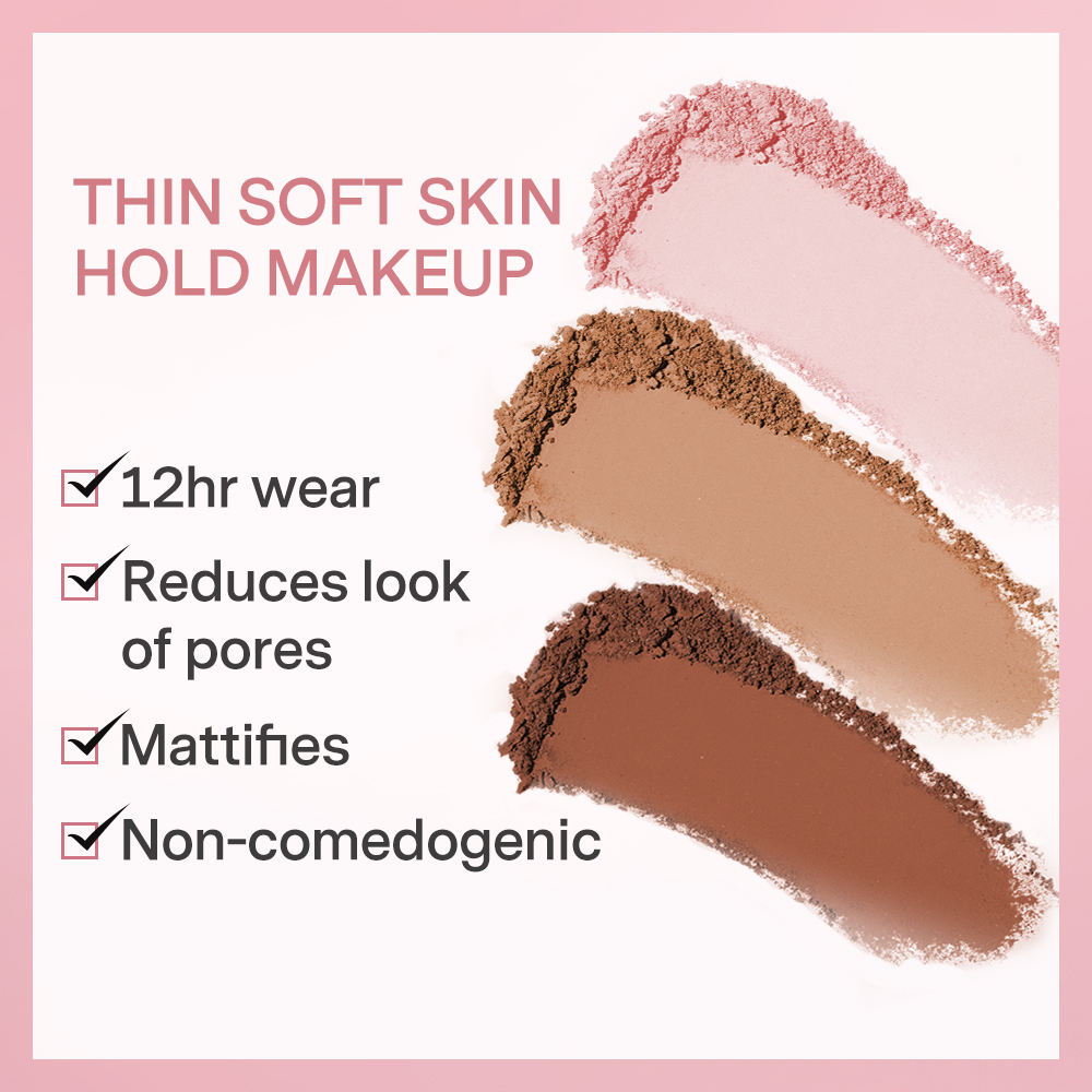 Skin-Friendly: Formulated with nourishing and soothing ingredients like chamomile extract, sea buckthorn, oatmeal, plant collagen, eucalyptus oil, and vitamin E, this setting powder helps soften and condition skin, leaving it more hydrated and looking plumper and more supple.
